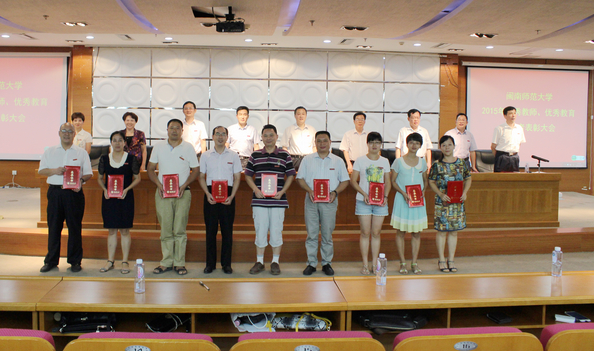 为弘扬高尚师德和无私奉献精神,进一步激发广大教师和教育工作者树立崇高的职业理想,积极献身教育事业,大力营造为人师表、教书育人、敬业爱岗的良好氛围,推动学校加快发展。近日,在第31个教师节来临之际,我校在逸夫图书馆五楼报告厅举行2015年优秀教师、优秀教育工作者表彰大会,表彰了19名优秀教师,18名优秀教育工作者。学校党政领导为受表彰的同志颁奖。